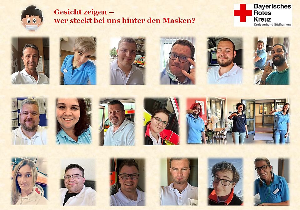 Stellvertretend für alle Kolleginnen und Kollegen findet sich auf der Collage eine kleine Auswahl an Mitarbeiterinnen und Mitarbeitern, die „Gesicht zeigen“ und damit verraten, wer sich hinter den Masken verbirgt.