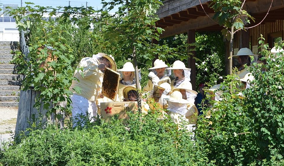 Zum Abschluss des Projektes konnten wir mit allen unseren Kindern den Lehrbienenstand in Monheim besuchen. Dort haben wir von der Imkerin viel über die Bienen und ihre Aufgaben erfahren.