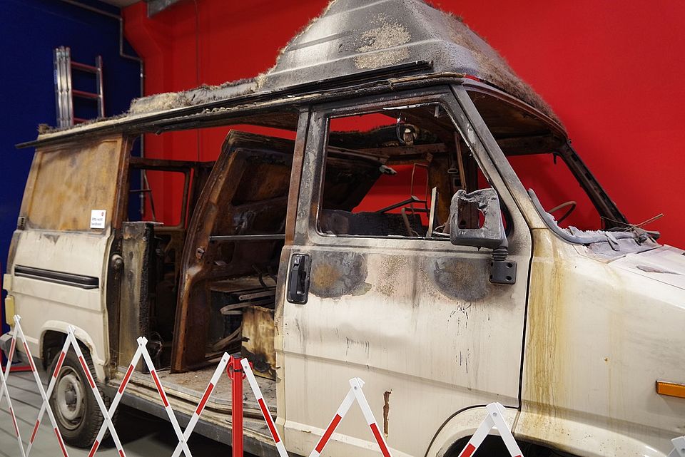 Ein ausgebrannter Camping-Bus mit Zubehör gehörte ebenfalls zur Ausstellung. Entlang des Rundwegs gab es außerdem Themenschwerpunkte wie Rettungsgassen, Feuerwarnmelder, Rettungsleitstellen, Feuerlöscher oder Brandschutz. Mit interaktiven Stationen konnte man auch Vorgehensweisen der Feuerwehr selbst erleben. Im ersten Obergeschoss wurden Schutzausrüstungsgegenstände der Feuerwehr ausgestellt, außerdem zeigte man Vorkehrungen zur Prävention von Feuern. Gleichzeitig wurden die Themen Feuerwehr im Internationalen Kontext sowie der Bereich Jugendfeuerwehr und Feuerwehr im Wandel der Zeit gezeigt. Im Erdgeschoss warteten mehrere Stationen, wo man sich im Dunkeln orientieren sollte oder wie eine Wohnung nach einem Brand aussieht bzw. was die häufigsten Ursachen für einen Brand sind.