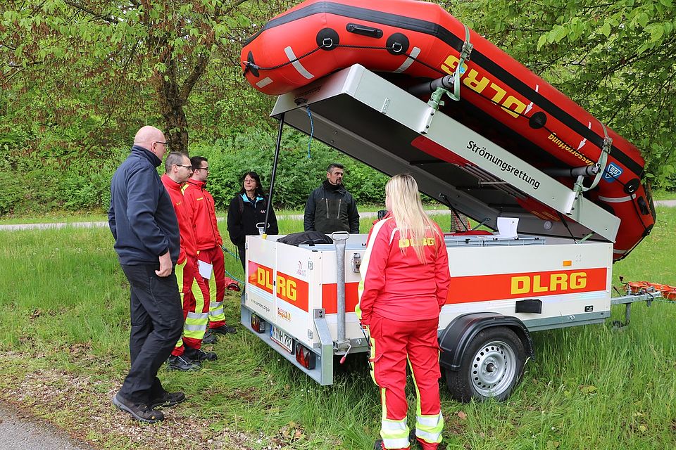 Die in Südfranken am Wasserrettungsdienst beteiligten Organisationen (DLRG und Wasserwacht) hatten auf dem Gelände der Wache bereits verschiedene Stationen aufgebaut.