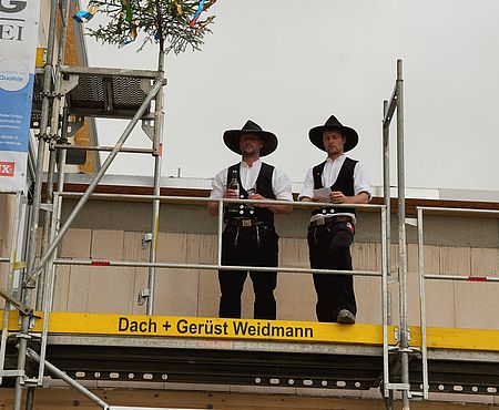 Der Rohbau der BRK Kindertagesstätte „Haus für Kinder“ ist weitgehend fertiggestellt. Zwar hätten die Zimmerleute bauartbedingt keinen Dachstuhl aufrichten müssen, wie BRK Geschäftsführer Rainer Braun bei der Begrüßung ausführte, dennoch wolle man sich bei den Handwerkern bedanken. Nachdem die Hälfte der Bauzeit erreicht ist, könne man quasi vom „Bergfest“ anstelle von „Richtfest“ sprechen.