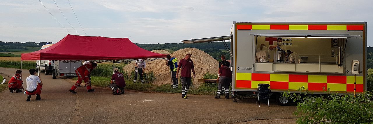 Daher entschied sich das DRK im Rahmen seines humanitären Auftrages im Landkreis Ahrweiler ein „Verpflegungszentrum 10.000“ einzurichten.