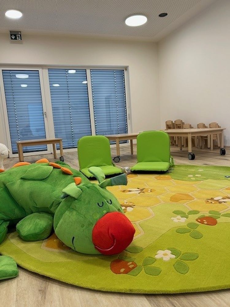 Im August 2025 eröffneten wir unser neu gebautes Haus für Kinder in Frickenfelden, einem Ortsteil der Stadt Gunzenhausen. Wir können in unserer Einrichtung insgesamt 99 Kinder aufnehmen. Davon 24 Krippenkinder, 50 Kindergartenkinder und 25 Hortkinder.