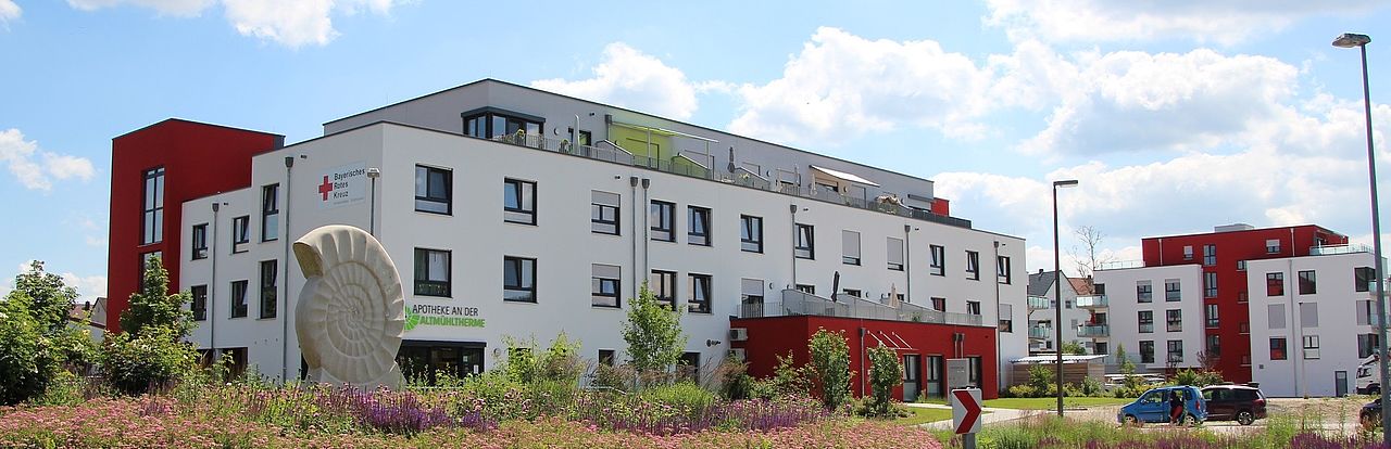 Mit unserem "BRK Seniorenzentrum an der Altmühltherme" eröffnete am 1. April 2019 eine Einrichtung mit umfassenden Angebot: 60 stationäre Pflegeplätze in überschaubaren Hausgemeinschaften, eine teilstationäre Tagespflege mit 30 Plätzen, eine Sozialstation und mehr als 40 barrierefreie Wohnungen und weiteren Serviceleistungen.