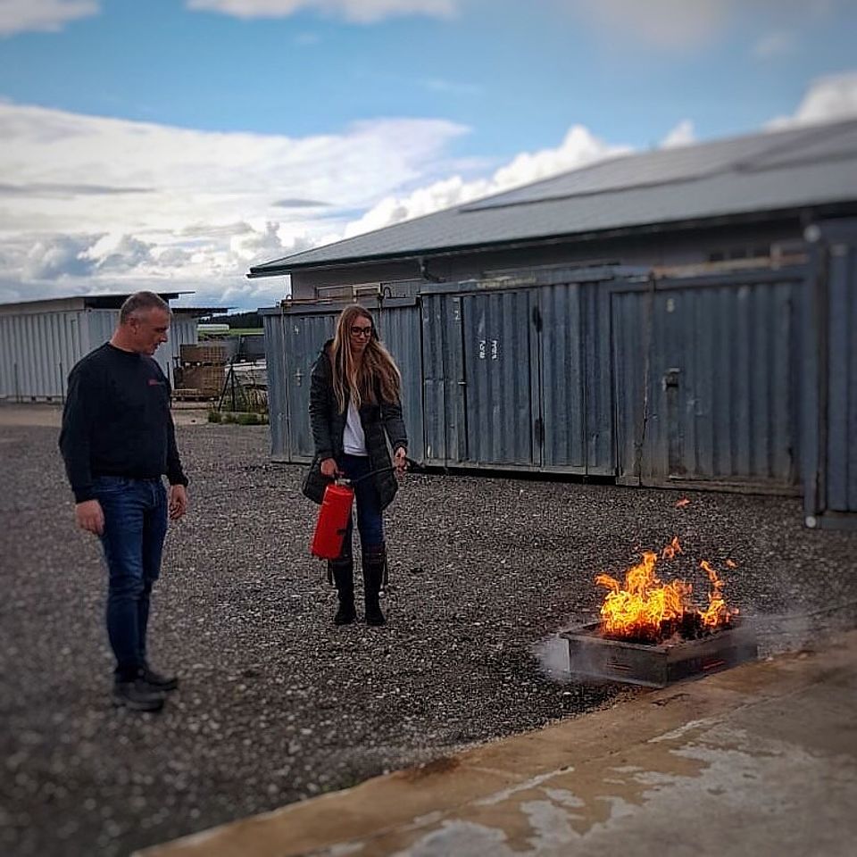 Zu guter Letzt wurde noch die Handhabung eines Feuerlöschers geübt, damit dieser schnell und sicher eingesetzt werden kann.