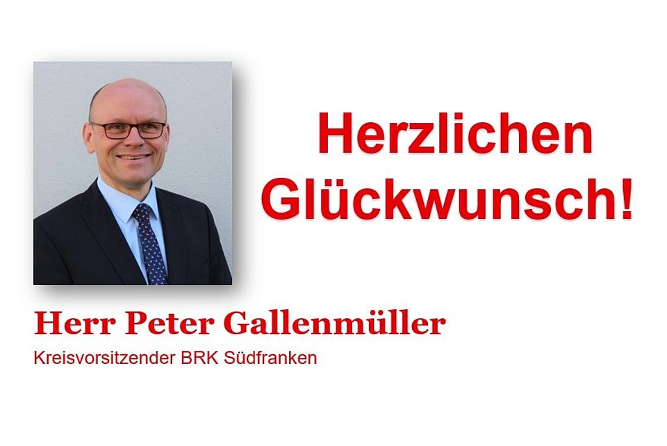 Peter Gallenmüller ist der neue Mann an der ehrenamtlichen Spitze des BRK Südfranken. Der gebürtige Weißenburger wurde heute mit großer Mehrheit zum Vorsitzenden des Kreisverbandes gewählt und tritt damit die Nachfolge von Wolf-Dieter Ueberrück an. Bei der Wahl im Rotkreuz-Haus Georgensgmünd sprachen sich 104 der 114 Wählerinnen und Wähler für den55-jährigen Diplom-Kaufmann aus. Gallenmüllers Amtsvorgänger verzichtete nach drei Wahlperioden auf eine erneute Kandidatur. Ueberrück stand in den vergangenen 12 Jahren an der Spitze der mehr als 20.000 Mitglieder zählenden BRK-Familie.